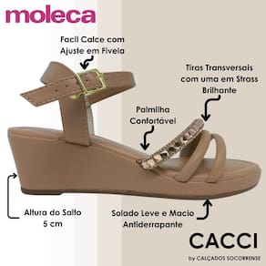 Conforto Incomparável: A palmilha acolchoada e o salto anabela proporcionam conforto durante todo o dia, sem abrir mão do estilo.
