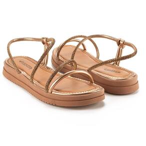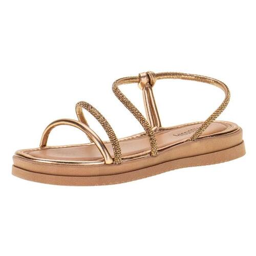 Tiras finas macias e resistentes, com aplicação de strass e acabamento metalizado, trazendo um visual sofisticado e elegante.