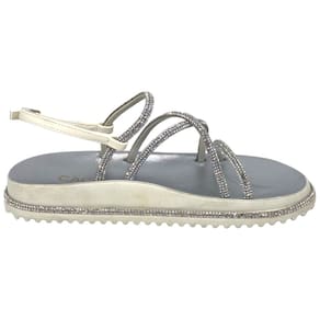 O destaque dessa sandália são as tiras adornadas com strass cintilantes. As tiras, feitas de um material durável e de alta qualidade, envolvem o pé de maneira confortável. Cada tira é cuidadosamente decorada com strass brilhantes, que capturam e refletem a luz, adicionando um toque de glamour e sofisticação ao design.