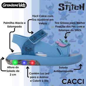 Com design moderno a sandália Disney Led traz um dos personagens mais comentados do momento: Stitch.