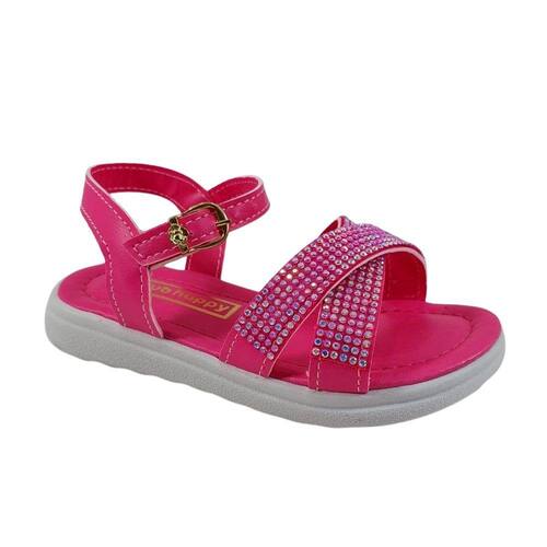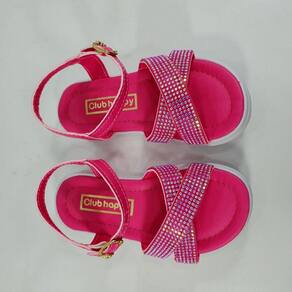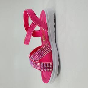Lindo modelo de sandalia infantil feminina, cabedal possui cristais furtacor, enfeite brilhante que encanta, fechamento por fivela, palmilha macia, solado antiderrapante, soladinho de 1cm de altura.