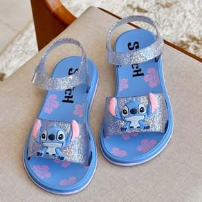 O personagem do momento em uma versão apaixonante: a sandália Stitch To Play traz um enfeite personalizado e diferente em cada um dos pés e uma sola com grafias coloridas e superdivertidas, deixando o Stitch em evidência.