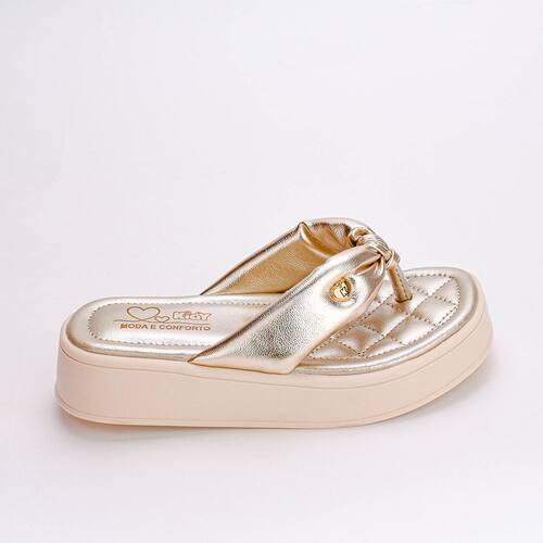 Com designer contemporâneo, o modelo flat form veio para ficar. Com todo sucesso do solado plataforma feito em material micro expandido, este modelo oferece leveza, estabilidade e segurança. Combinando estilo e conforto, destaca sua palmilha anatômica almofada e a correia puffer proporcionando ajuste suave e macio aos pés. A sandália perfeita para as jovens mocinhas que buscam estilo e diversão sem perder o conforto.