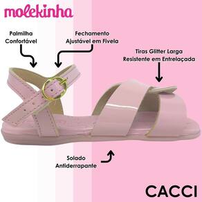 O solado antiderrapante oferece firmeza e segurança em variadas superfícies, proporcionando tranquilidade em cada movimento. Leve, confortável e cheia de personalidade, a sandália Molekinha é uma excelente escolha para compor looks encantadores e garantir bem-estar em todas as ocasiões.