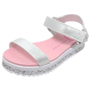 O solado flatform antiderrapante garante segurança e estabilidade em qualquer superfície, permitindo que sua pequena brinque e explore sem preocupações. A aplicação de glitter no solado traz um toque especial de brilho, deixando o calçado ainda mais encantador.