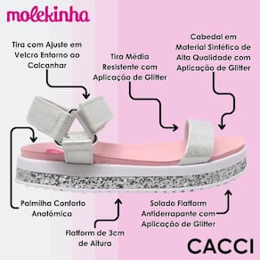 Deixe sua pequena brilhar com a Sandália Papete Brilho da Molekinha! Confortável, estilosa e cheia de detalhes encantadores, ela é a escolha ideal para quem quer combinar diversão e moda. Garanta já a sua e ilumine cada passo da sua menina!