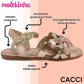 O solado antiderrapante garante firmeza em superfícies variadas, tornando a sandália ideal para passeios, festas ou brincadeiras ao ar livre. Leve e resistente, o modelo Molekinha combina praticidade e estilo, permitindo que a criança se movimente com liberdade e segurança, sem abrir mão de um toque divertido e sofisticado. É uma escolha perfeita para acompanhar o ritmo ativo e alegre do dia a dia infantil.