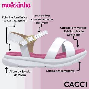 A Sandália Infantil Feminina Molekinha possui um cabedal leve e confortável, fabricado em material napa de alta qualidade. Seu formato de bico é arredondado para proporcionar conforto aos dedos. A coloração é uniforme, garantindo um visual elegante. O fechamento é por fivela ajustável, facilitando o calce. Sua construção ergonômica oferece suporte adequado aos pés durante o uso. A palmilha é macia, o forro interior é suave ao toque, proporcionando conforto prolongado. O solado emborrachado oferece durabilidade e aderência. Fácil de usar e combinar, é ideal para o dia a dia ou ocasiões especiais.