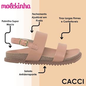 Não perca a chance de deixar os pezinhos da sua pequena ainda mais estilosos! A Sandália Molekinha é a combinação perfeita de conforto e glamour. Adquira já a sua e faça cada passo ser um momento de alegria e charme!