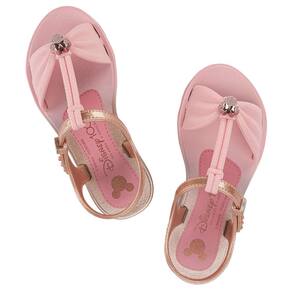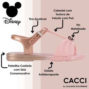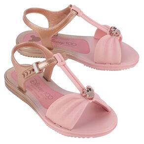 A sandália comemorativa de Disney 100 traz o charme do laço característico da Minnie em destaque. O cabedal possui textura de veludo com poá, em formato franzido, remetendo ao laço da personagem. Para completar a delicadeza, um pin metalizado em formato de silhueta da Minnie posicionado no centro. Na palmilha o logo comemorativo da Disney.