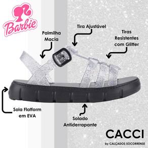 A sandália da Barbie que é um sucesso vem com novas opções de cores. Ela é super fashion para as meninas conectadas com esse universo da moda. A sola flatform é de EVA, deixando o produto leve e confortável. As tiras vêm inspiradas nos modelos das fishermens que seguem fortes como indicação de moda.