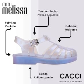 É claro que o modelo clássico e icônico do universo Melissa também tem um espaço garantido no coração dos pequenos. A Sandalia Infantil Menina Mini Melissa Possession 32410 é um jelly shoe e com palmilha fofinha.