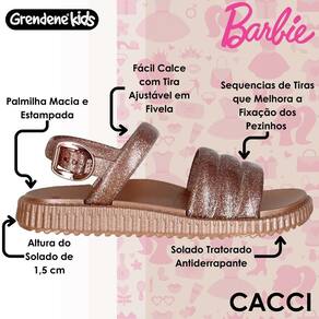 A nova sandália Barbie Single possui sola em PVC Expandido, palmilha anatômica e tiras encantadoras em PVC Full Plastic com efeito Bubble. O fechamento é através de uma delicada fivela metalizada com regulagem e as tiras possuem maxi glitters deixando a Barbie Single ainda mais charmosa. -Barbie Single: repleta de textura, volumetria e maxi glitters; -Fechamento em fivela metalizada com regulagem; -Sola em PVC Expandido e tiras em PVC Full Plastic com efeito Bubble; -Assinatura e silhueta da Barbie na palmilha.