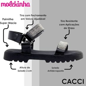 Sandália Infantil Menina Moderna Casual Strass Molekinha - Preto - 26