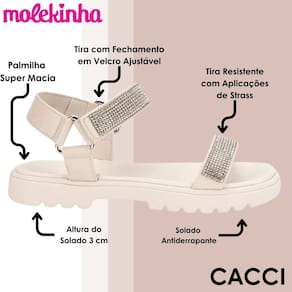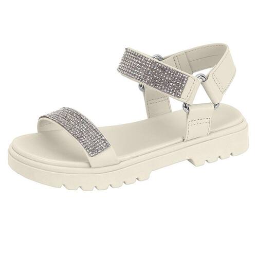Estilo Elegante: As tiras com aplicação em strass adicionam um charme especial, tornando esta sandália uma peça que se destaca em qualquer look. É a escolha ideal para as pequenas que adoram estar na moda.