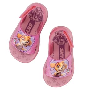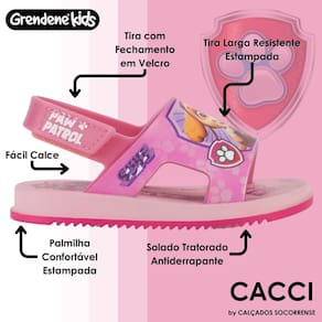 A sandália que acompanha traz em evidência esses dois personagens tão queridos e para facilitar e ter praticidade no calçar o fechamento em tira autocolante.