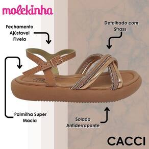 Dê à sua pequena a experiência única de conforto e estilo com a Sandália Molekinha! Um modelo cheio de charme, pronto para tornar qualquer momento ainda mais especial. Não perca essa oportunidade de transformar o dia a dia dela!