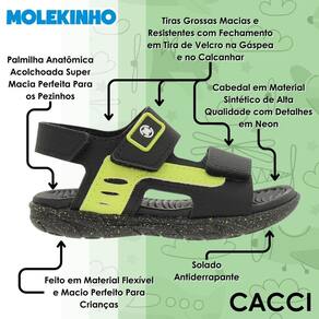 Com a Sandália Infantil Menino Conforto Anatômica Neon da Molekinho, seus pequenos estarão prontos para brilhar e se divertir com segurança e conforto em qualquer ocasião!