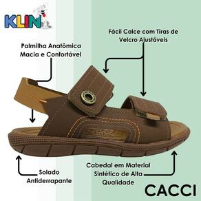 Sandalia Infantil Menino Conforto Ajuste Fácil Tictac Klin - 21 - Marrom