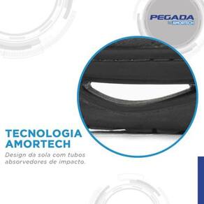 Tecnologia AMORTECH no Solado: Amortecedores em tubos absorvem os impactos, oferecendo proteção extra e suavidade a cada passo.