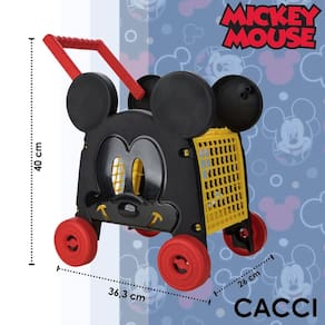-Acessório com grade superior, volumetria das orelhas do Mickey nas laterais e rodinhas funcionais;