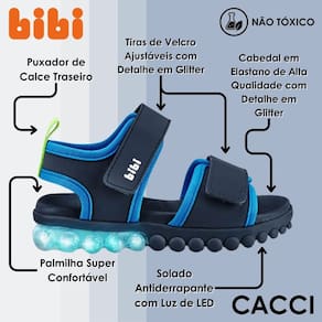 Ilumine os passos do seu pequeno com a Sandália Infantil Azul Marinho! Com luzes que piscam a cada passo, palmilha em EVA e um design moderno, ela garante conforto e diversão em todas as aventuras. Adquira já e veja seu filho brilhar a cada pisada!