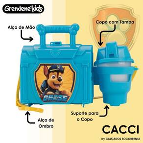 Para esse combo trazemos uma maleta do Chase: vem com um copo com tampa, que fica preso no suporte, sendo fácil de carregar e levar para qualquer lugar. A maleta ainda possui duas opções de alça, de mão e de ombro, deixando-a super versátil e prática, além de ter um tamanho ótimo para carregar brinquedos, utilidades em geral e tudo o mais que a criança desejar!