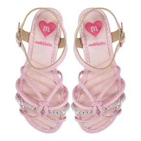 A sandália Molekinha 2157888 tem o cabedal com tiras trançadas que são confeccionadas em material sintético, uma das tiras é revestida de pedrarias e strass hotfix deixando o look das meninas cheio de brilho e charme. Palmilha de EVA e tecido acolchoado para o máximo de conforto. O solado é de material TR antiderrapante, garante mais segurança e estabilidade ao caminhar