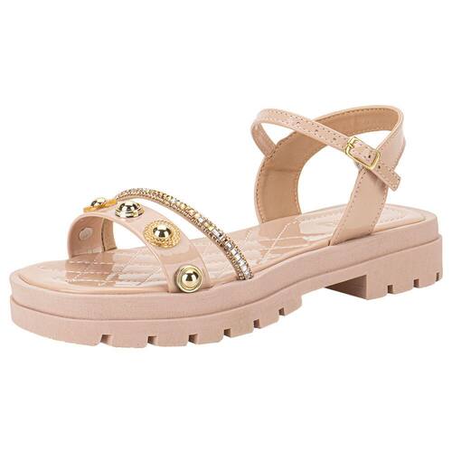 A Sandália Infantil NilQi 3056 é ideal para meninas. Feita com material sintético e strass, possui palmilha e solado de borracha com acabamento colado/costurado. Com solado de 3 cm, estilo rasteira e salto baixo, oferece conforto e brilho para o dia a dia das pequenas.