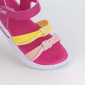 Sandália Kidy Fly estilo Papete para as meninas que amam moda e estilo, mas não deixam o conforto e praticidade de lado. Com design moderno e cores alegres ela traz tudo que as pequenas precisam para brincar, correr e se divertir. Detalhe de tiras em glitter com nós que deixam os pezinhos bem livres e frescos. É o calçado perfeito para o dia a dia das meninas, com looks mais casuais ou festinha.
