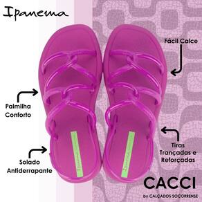 As tiras finas e entrelaçadas ganham texturas de alta definição que trazem o brilho, detalhamento que garante apelo comercial junto às consumidoras vaidosas. A sola, com contornos arredondados e bico levemente quadrado, traz novidade e muito conforto. O calce fácil garante praticidade no dia a dia.
