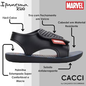 Feita com materiais de alta qualidade, a Ipanema Kids Marvel Humanizado oferece durabilidade e resistência para acompanhar as aventuras mais incríveis. Deixe seus pequenos explorarem o mundo com estilo e conforto, enquanto mergulham no emocionante mundo dos super-heróis!