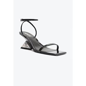 Com linhas ousadas e surpreendentes, essa sandália preta traz a elegância do visual minimalista em um design cheio de personalidade! Com fechamento de fivela no tornozelo, tem delicadas tiras em verniz, impactante bico quadrado e detalhe do salto escultural médio. Uma aposta sexy e sofisticada para tirar qualquer produção do básico!