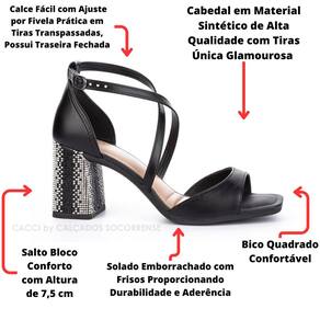 Sandalia Luxo Salto Bloco de Brilho Conforto Tanara T8114 - Preto - 37