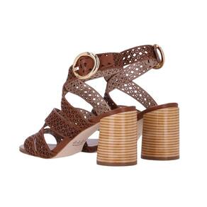 Sandália Luz da Lua com Salto Alto Grosso Vazado - 37 - Marrom Cacau
