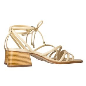 A sandália de salto é uma peça sofisticada e elegante. Com um design moderno, ela apresenta tiras delicadas que proporcionam conforto e estabilidade ao caminhar. O salto alto adiciona um toque de glamour, perfeito para graças especiais.