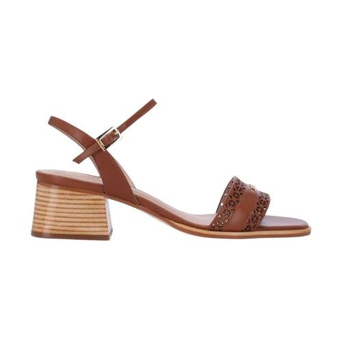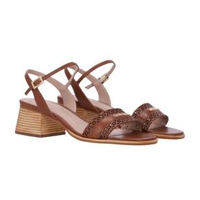 Sandália Luz da Lua Salto Bloco com Tiras Vazadas - 38 - Marrom Cacau