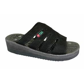 Detalhe Técnico: Sandália Feminina com Salto Charme – Couro nobuck com tecnologia em reflexologia e magnetoterapia. A Sandália Charme foi desenvolvida para oferecer elegância, estabilidade e benefícios integrados ao uso diário. Produzida em couro nobuck, de textura macia e toque aveludado, seu cabedal envolve os pés com firmeza e conforto, proporcionando excelente ajuste anatômico, sem pontos de pressão. O modelo possui salto e estruturado, que favorece o alinhamento postural e distribuição equilibrada do peso corporal, ideal para quem busca sofisticação sem comprometer a saúde dos pés. A palmilha é anatomicamente desenhada com saliências distribuídas conforme os pontos de reflexologia podal e da técnica oriental Doin, estimulando a planta dos pés a cada passo. Esse estímulo contínuo atua de forma direta na melhora da circulação periférica, no relaxamento muscular e no alívio de tensões acumuladas. Além disso, a base conta com magnetos estrategicamente posicionados, aplicando a magnetoterapia passiva, que favorece o equilíbrio energético, redução de inchaços, oxigenação dos tecidos e recuperação muscular. Características Técnicas: Material: Couro nobuck preto – macio, resistente e com acabamento natural Palmilha anatômica: com saliências para reflexologia e estímulo Doin Tecnologia magnética: 14 magnetos distribuídos conforme pontos de podologia energética Salto firme e com boa base de apoio Solado: EVA leve, com absorção de impacto e aderência Indicação: Uso diário; ideal para quem busca conforto, alívio de dores plantares e estimulação contínua