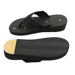 Cabedal de tecido sintético e solado alto de EVA com látex antiderrapante.