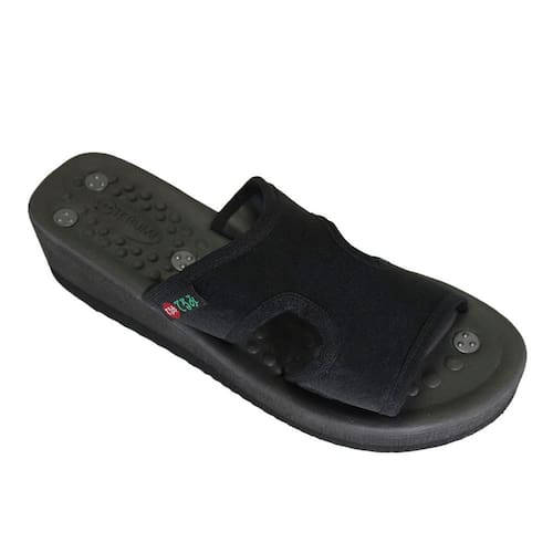 Seu design elegante combina com diferentes ocasiões, enquanto sua palmilha anatômica conta com saliências estrategicamente posicionadas que massageiam suavemente a planta dos pés, estimulando pontos de reflexologia e da técnica oriental Do-In.
