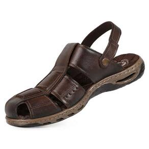 Sandália masculina fabricada em couro, fechada na frente, possui sistema Amortech Pegada. Pode ser usada também como chinelo.