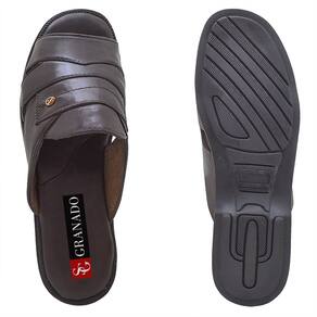 Sandalia Masculina Couro Cafe Marrom Claro Preto Extra Conforto Chinelo Granado - Preto - 43