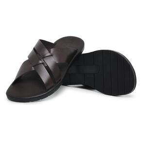 Sandália Masculina Couro Tiras Conforto Moderna Macia - 44 - Marrom Chocolate