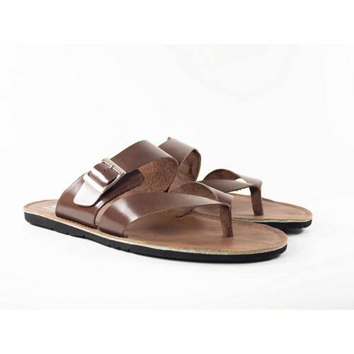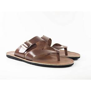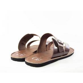 Sandália Masculina Couro Tiras Rasteira Dedo Conforto - 41 - Marrom Chocolate