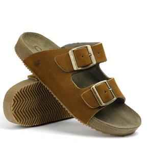 Sandália Masculina Feminina Papete Flatform Couro Fivela - 36 - Marrom