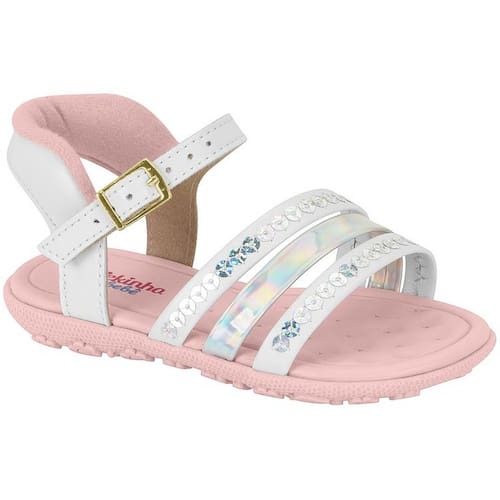 Confeccionada em material de alta qualidade, traz acabamento branco perolado com detalhes sutis e delicados, que deixam o visual ainda mais encantador. O fechamento por fivela com ajuste lateral oferece praticidade e um calce firme, enquanto a palmilha macia e anatômica proporciona conforto durante todo o uso.