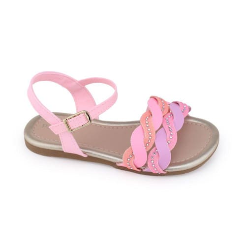 O modelo 642.058 é uma sandália linda e extremamente confortável, fabricada em materias sintéticos é fácil de calçar, pois sua fivela é de calçe fácil. Tem como detalhe tiras entrelaçadas no peito do pé com pedrinhas strass e brilho. A palmilha tem conforto é macia, revestida, proporcionando muito bem estar, além de ser de fácil limpeza, apresenta a logo da Pampili. O solado é macio com 0,5cm com frisos para maior segurança.