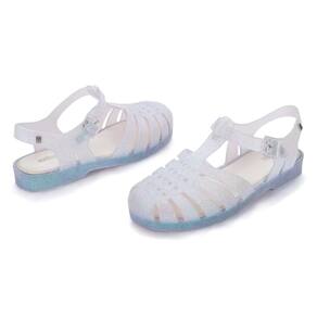 O design deslumbrante desta sandália apresenta um acabamento em glitter que adiciona um toque de brilho e glamour a qualquer look infantil. O glitter não só atrai os olhares, mas também é fácil de limpar, tornando a manutenção deste calçado simples para os pais.