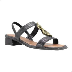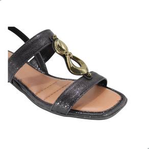 Apresentamos a Sandália Mississipi de Salto Bloco Preta, a união perfeita entre elegância e conforto. Com seu design sofisticado, ela se destaca pelas tiras finas que envolvem delicadamente os pés, e a peça metalizada sobre o pé que adiciona um toque de glamour irresistível. O bico de contorno quadrado e o salto bloco de 3,5 cm garantem estabilidade e um caminhar seguro, tornando-a ideal para quem busca estilo sem abrir mão do bem-estar. O acabamento em sintético com uma textura sutil, eleva a sofisticação de qualquer look, seja para um dia de trabalho ou um evento casual.
