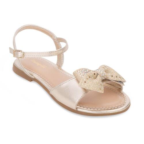 Nome: Sandália Pampili Infantil PP24-40926. Gênero: Menina. Indicado Para: Moda-Dia a Dia. Ocasião: Casual. Material Externo: Alternativo/Metalizado. Detalhe: Laço com aplicações de strass no cabedal. Fechamento: Fivela no tornozelo. Palmilha: EVA, costurada e anatômica. Solado: Borracha antiderrapante. Peso do Produto: 418 g (o peso varia de acordo com a numeração). Garantia do Fabricante: Contra defeito de fabricação. Origem: Nacional. Código Produto: 04050644. Marca: Pampili.